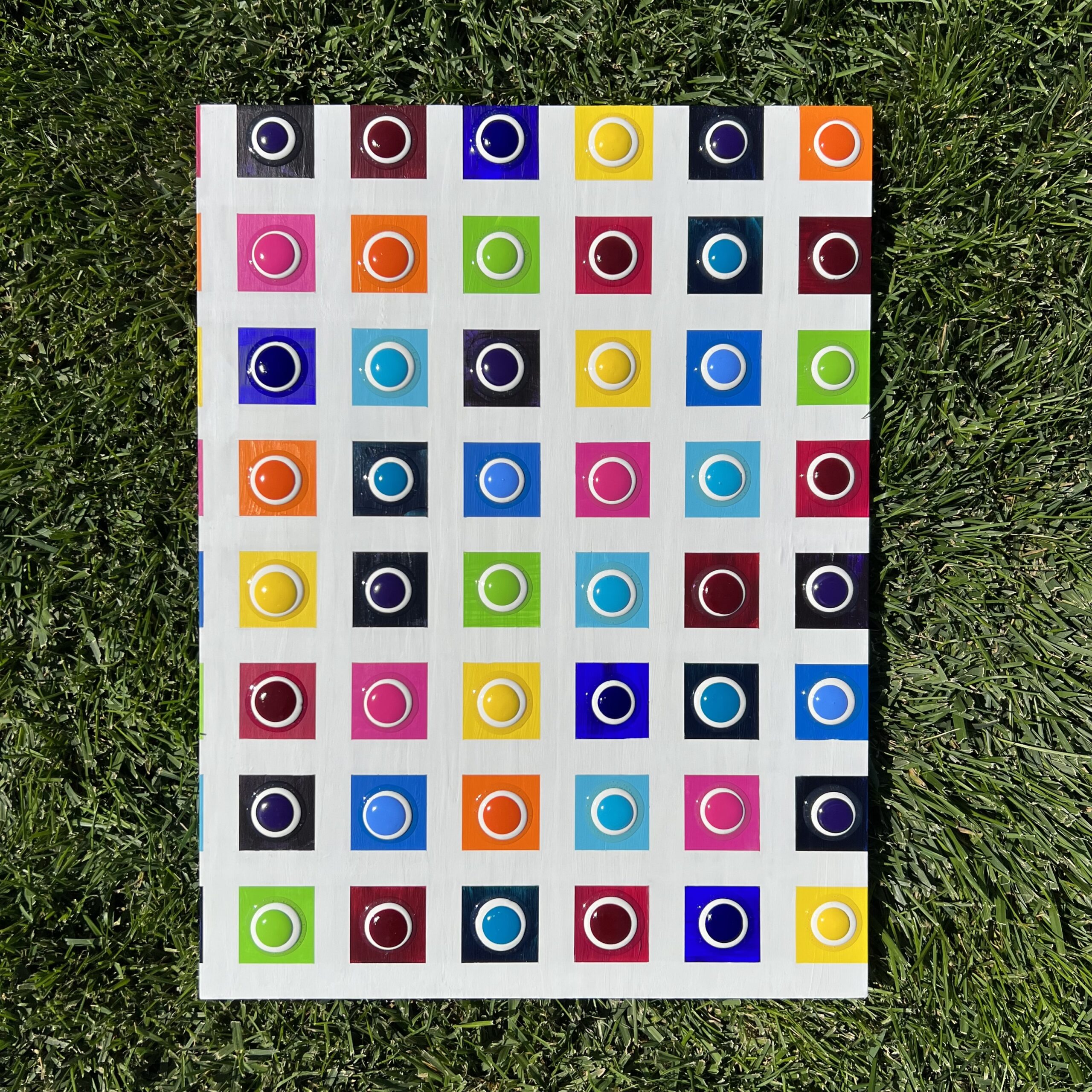 Blob Art; Geometric Squares and 3 layers of blobs on Large Wood Canvas.